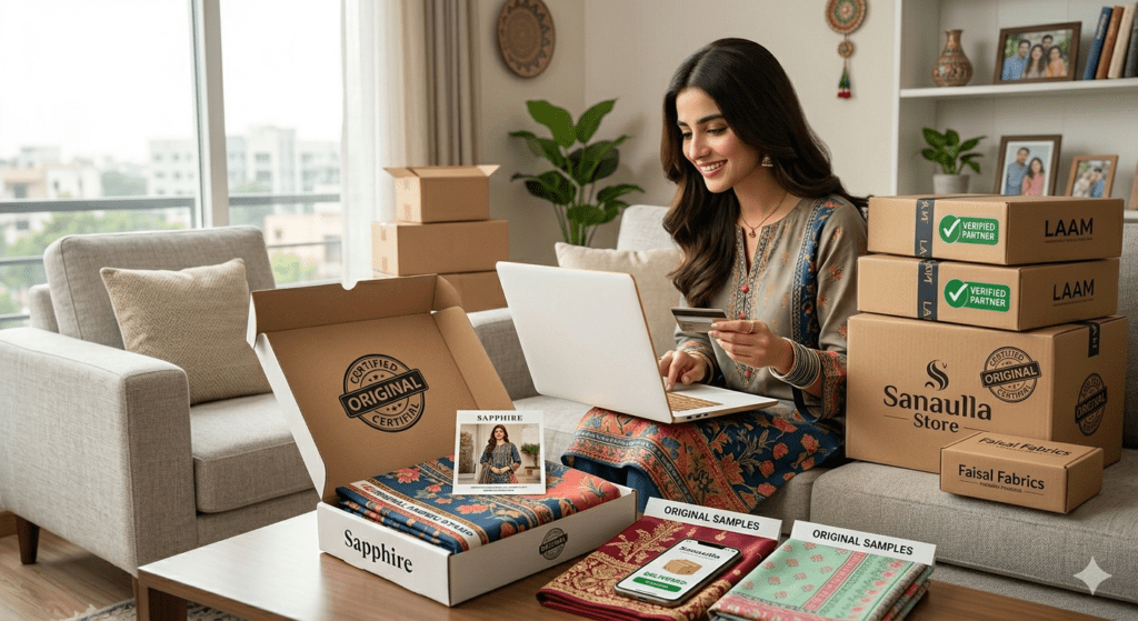 Original unstitched suits guarantee high GSM fabrics (120+ for lawn), vibrant digital prints that withstand 50+ washes, and ethical manufacturing—unlike fakes that fade after one use. Online shopping saves 20-40% via sales, offers detailed zoom images for embroidery checks, and provides 7-14 day returns. For Punjab residents, COD eliminates payment risks, with 2-4 day delivery to remote areas.