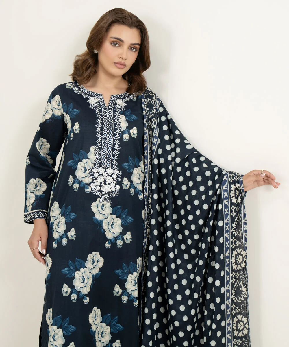 Embroidered Neckline & Hem Border 3pc
